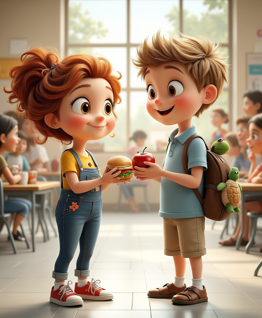 Sophie noticed her classmate had forgotten lunch. She shared her sandwich and fruit without expecting anything in return. Later, when Sophie forgot her lunch, the same classmate helped her. Sophie realised that generosity builds strong friendships and encourages others to be kind too.