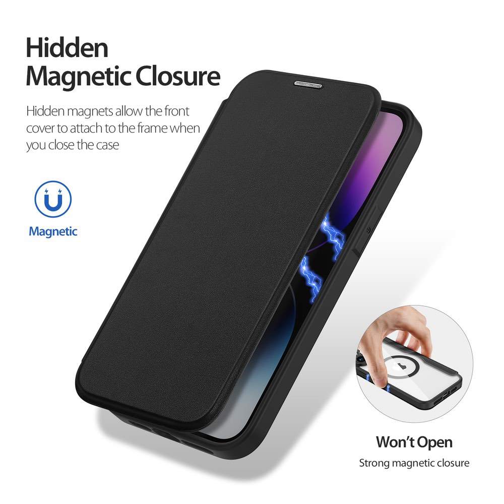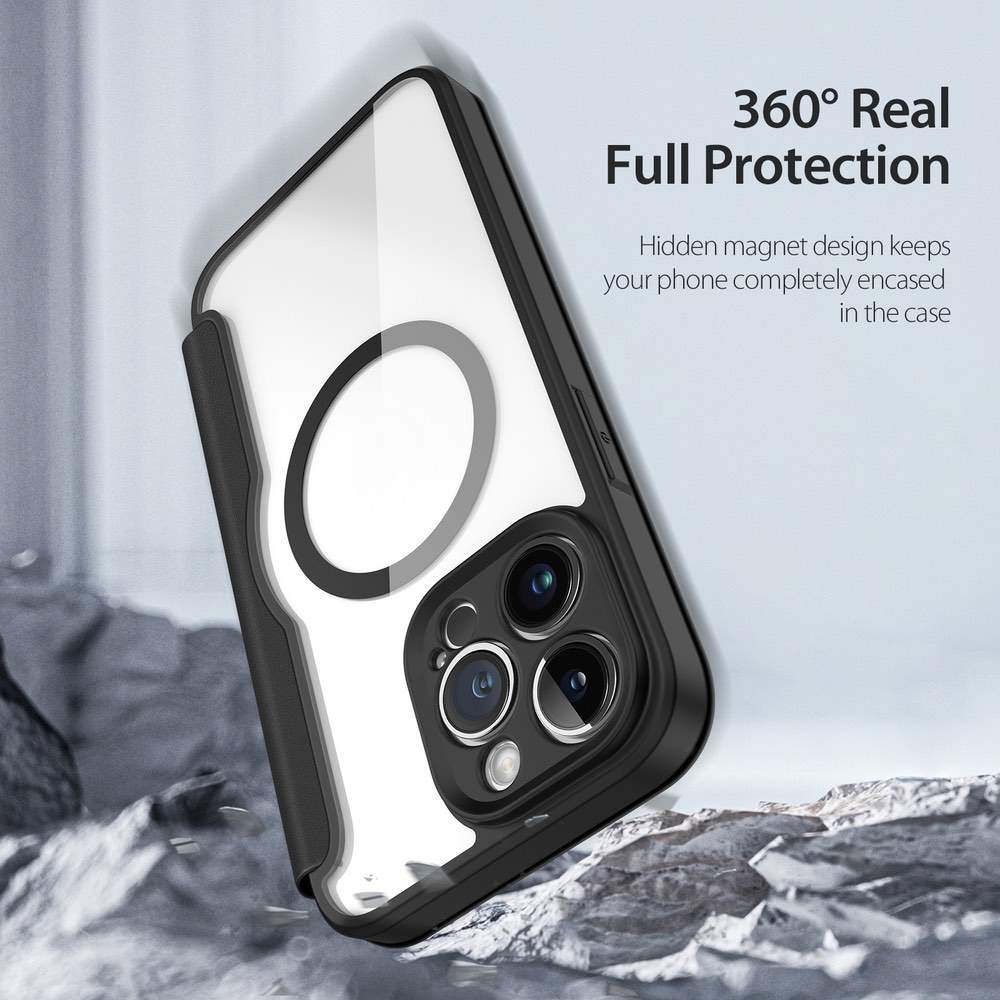 Elevate your iPhone 14 Pro Max with the elegant DUX DUCIS Skin X Pro Series MagSafe Case in sleek black. This premium case is a perfect fusion of style and practicality, crafted from a blend of durable PC, TPU, and PU leather. Designed for those who value seamless organization and comprehensive protection, it offers a secure card slot and powerful MagSafe compatibility. Experience a new level of sophistication that protects your device while simplifying your everyday carry.