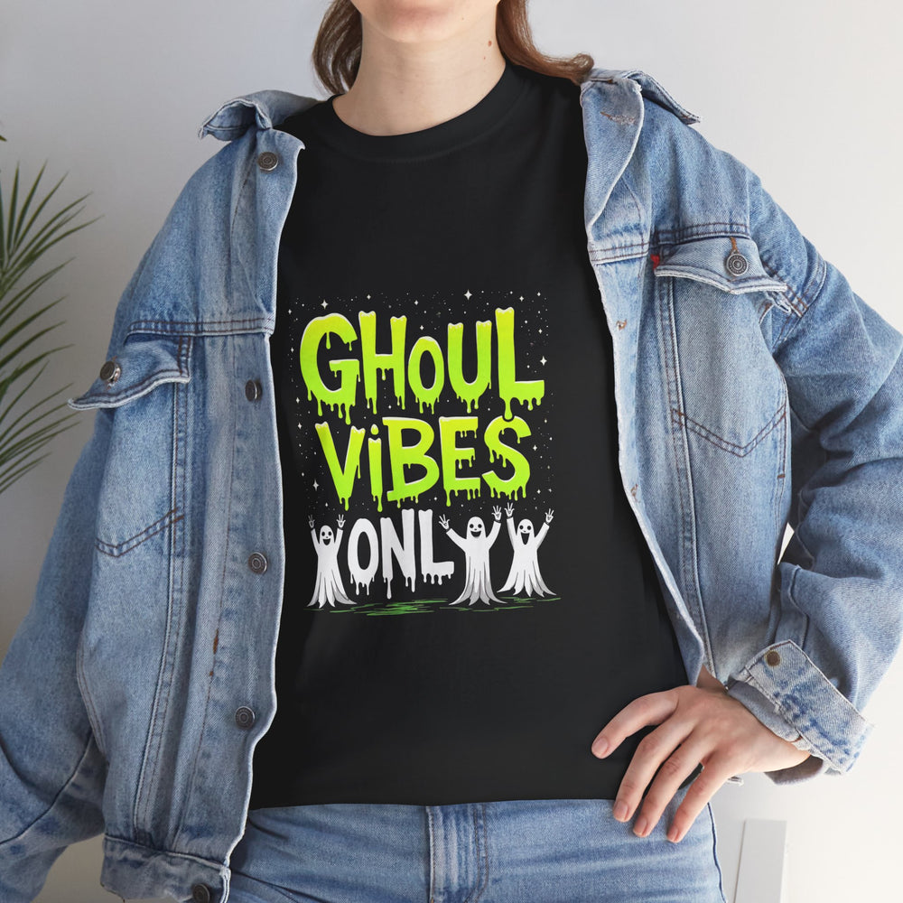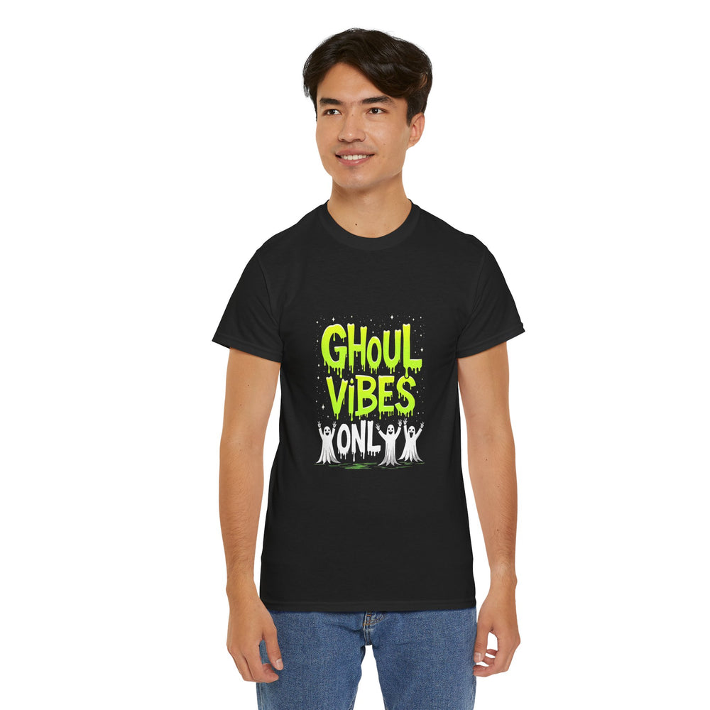 Embrace the spooky season with this Unisex Heavy Cotton Tee, designed for those who love to express their unique vibe. Crafted with comfort in mind, this tee makes a perfect addition to your Halloween festivities or casual wear throughout the year. The bold 'GHOUL VIBES ONLY' print adds a playful touch, making it ideal for Halloween parties, costume events, or simply lounging at home. This tee resonates particularly well with youth and adults who enjoy playful fashion statements. Pair it with your favorite jeans or cozy joggers for effortless style that captures the spirit of the occasion. Whether you're celebrating Halloween, attending a themed event, or embracing a casual day, this tee is here to keep you stylish and comfortable.