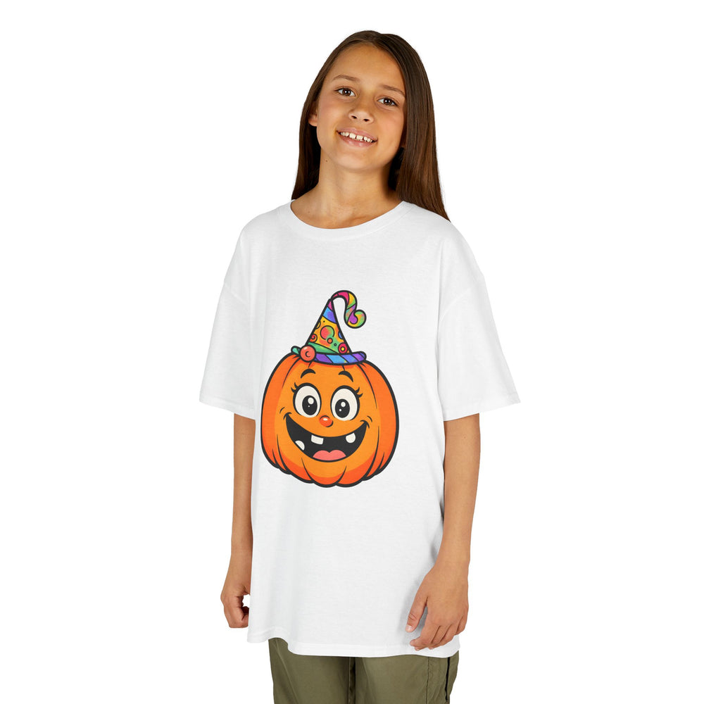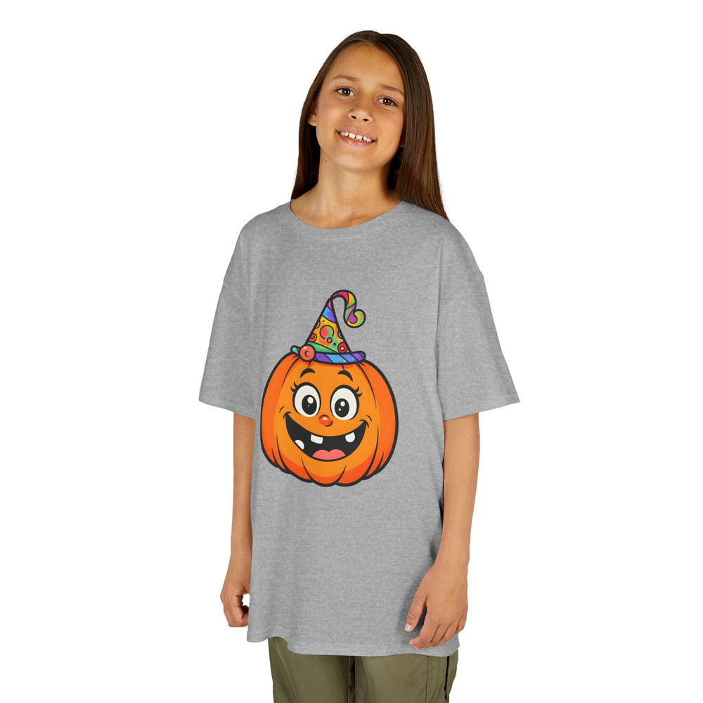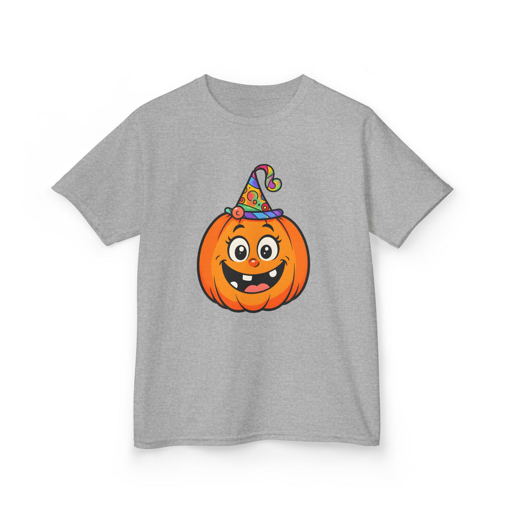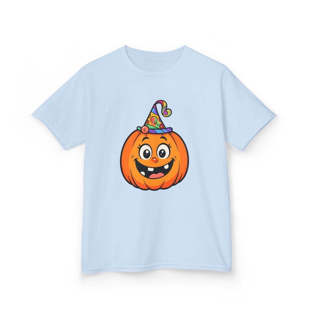 Introducing the perfect Kids Heavy Cotton™ Tee that brings joy and creativity into children's wardrobes. With its playful design, this tee showcases a cheerful pumpkin wearing a party hat, making it a fun addition for Halloween celebrations and fall festivities. Kids will love its comfortable fit, allowing them to play freely while expressing their personality. Ideal for young ones who enjoy dressing up and celebrating holidays, this tee is sure to be a hit at school parties or family gatherings. Made from soft, ethically sourced cotton, it combines style and sustainability, making it a thoughtful choice for both parents and kids alike.