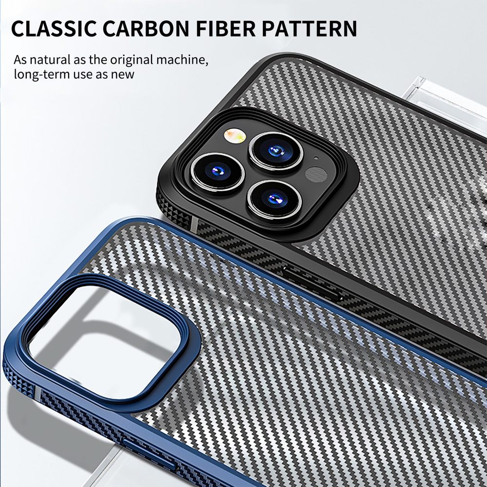 Protect your iPhone 14 Pro Max with the highly durable Carbon Fiber Texture Shockproof case from iPAKY. This tough case features advanced engineering with carbon fiber texture material that guards against scratches, dirt, and accidental drops or bumps. Its lightweight construction minimizes bulk, and its ergonomic design yields a comfortable grip and tactile buttons.