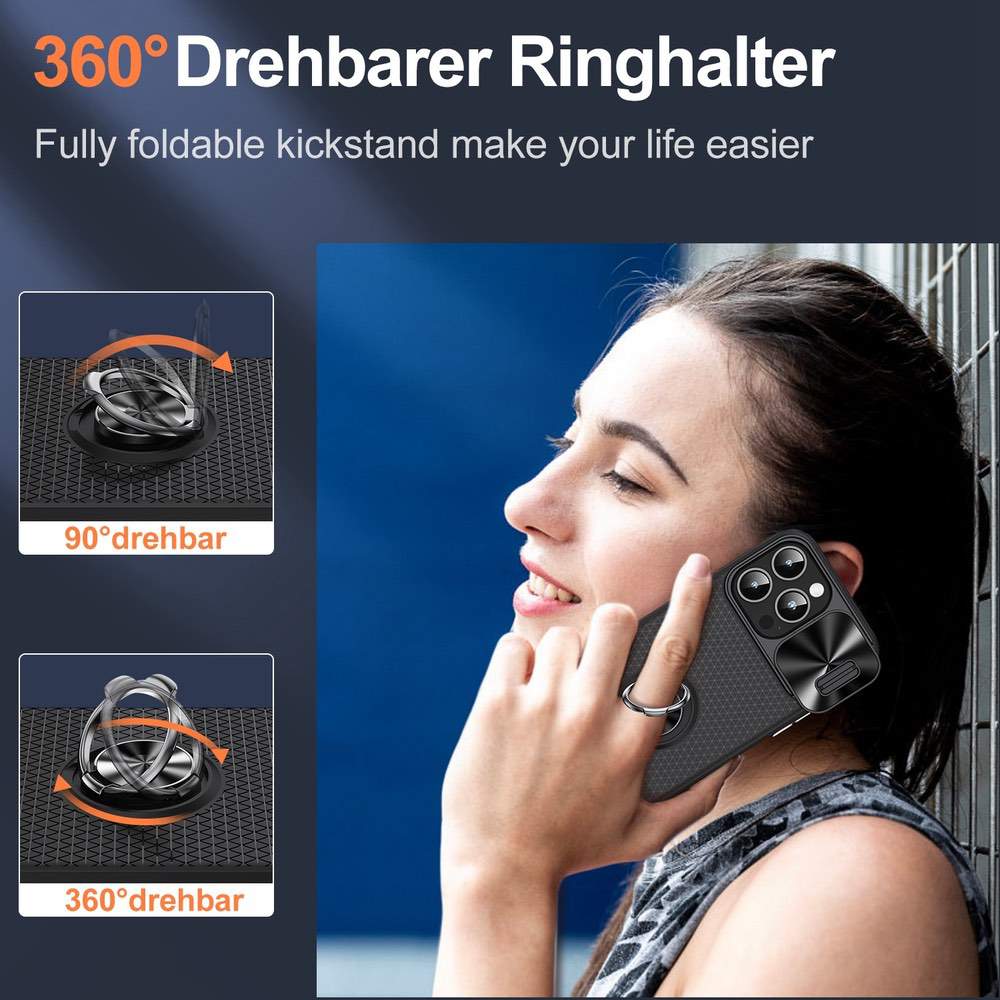 Built-in Ring Holder: Enhances grip and doubles as a kickstand for hands-free viewing.