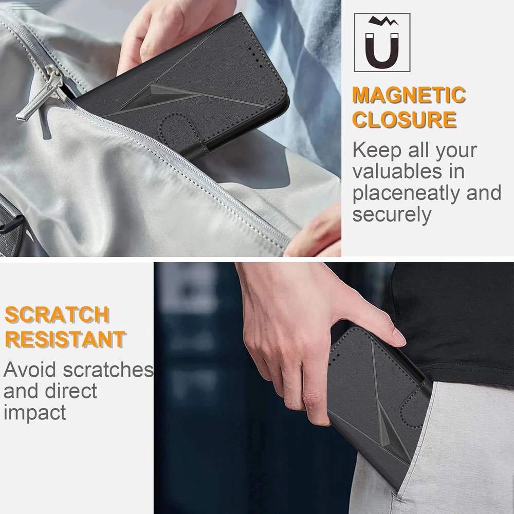 Discover the perfect fusion of style and functionality with the OnePlus 12 Triangle Pattern Buckle Clasp PU Leather Phone Case (Black), crafted from durable PU leather. This elegant accessory adds a sophisticated geometric flair to your OnePlus 12, ideal for those valuing both organization and protection on the go. Its sleek design enhances your phone’s appeal while offering practical storage solutions. Elevate your everyday experience with this chic, versatile case that blends fashion with utility.