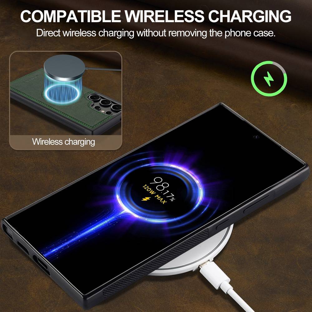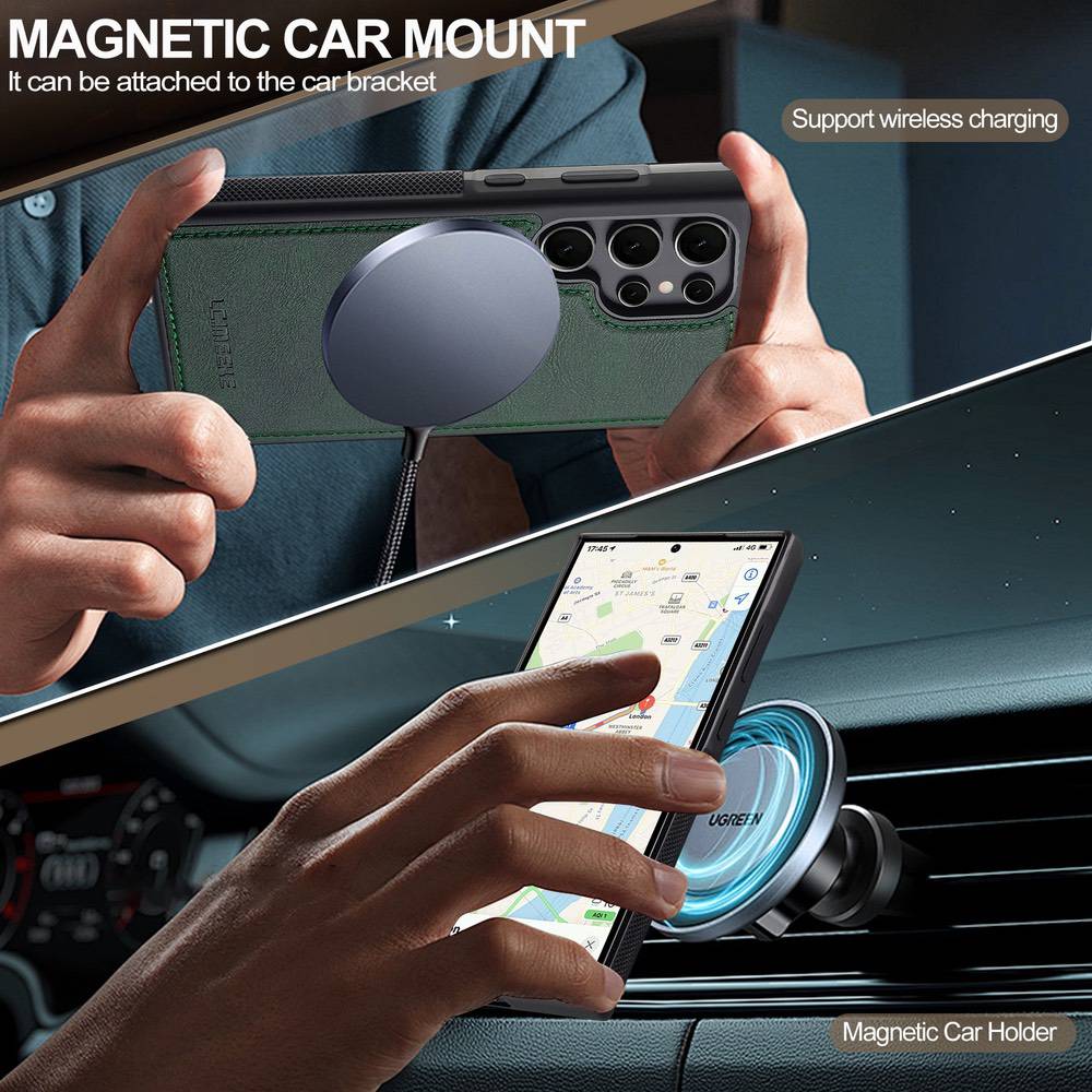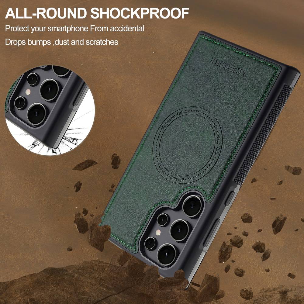 Introducing the premium LC.IMEEKE case, designed to offer superior protection and smart functionality for your Samsung Galaxy S23 Ultra 5G. This elegant back cover is expertly crafted from high-quality PU leather and a thick TPU inner shell, giving your phone a luxurious feel while ensuring outstanding durability. It is the ideal accessory for users who prioritize robust defense without sacrificing the convenience of modern magnetic technology. Elevate your device with this stunning forest green case, blending elegance with practicality for an unparalleled user experience.